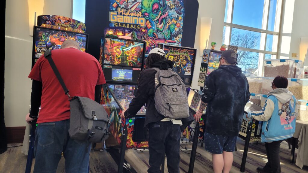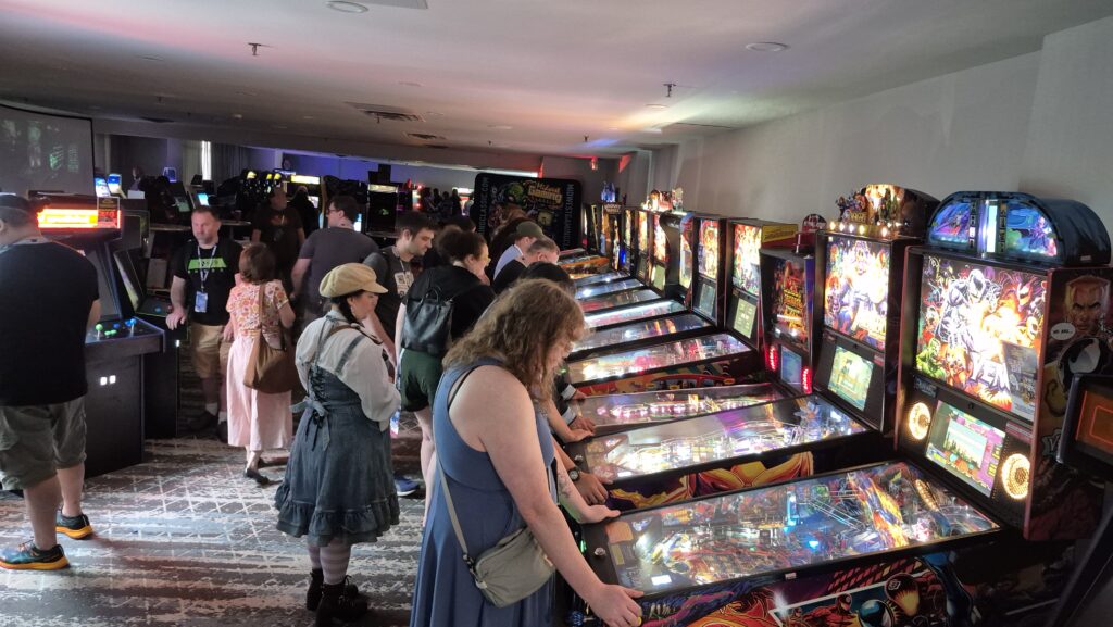 Retro arcade video games and pinball machines are magnets that keep people engaged. Plus, pinball machines are social centers with up to four players per game and open to strangers going head-to-head and making new friends or frenemies.